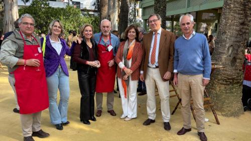 Entregaron los premios Antonio Pulido Gutiérrez, presidente de la Fundación Cajasol y Fátima Báñez García, presidenta de la Fundación de la Confederación Española de Organizaciones Empresariales (CEOE), Isabel Contreras Guyard, consejera del Grupo Azvi y Manuel Ruiz Rojas representante de CajaRural del Sur; Raul Jesús Ortega González, director territorial Sur y Extremadura de Cajamar y Manuela Carretero Torres-Ternero, gestora de Asuntos Públicos, Comunicación y Sostenibilidad de Coca -Cola Europacif Partners.